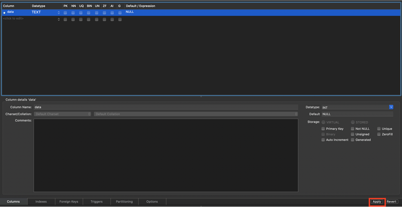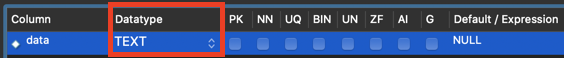data의 데이터 타입을 INT-> TEXT로 바꾼 뒤,