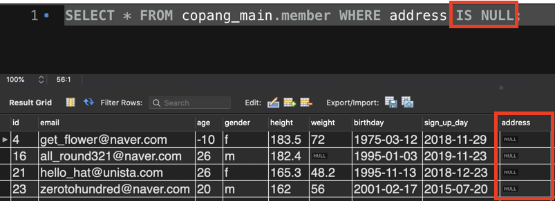 가장 오른쪽의 빨간색 박스를 보면 원래 height 컬럼이 NULL이었던 곳은 여전히 NULL이다.